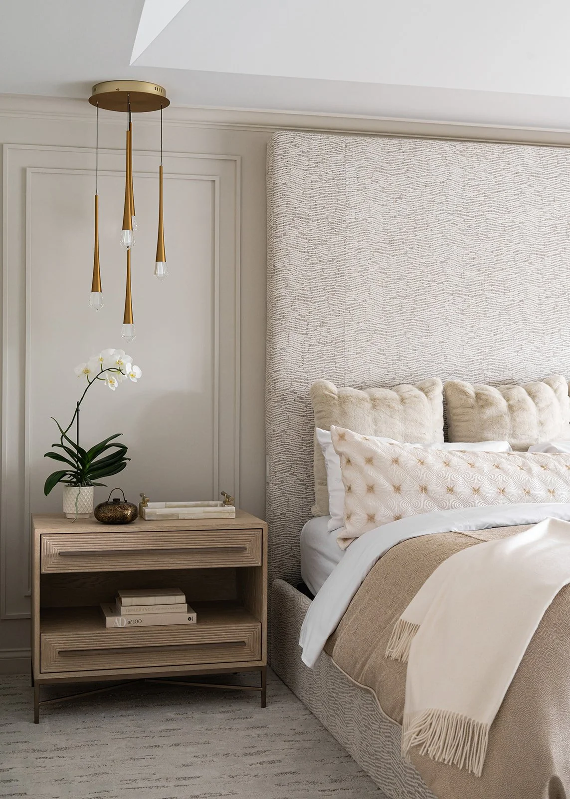 Where refined luxury meets restful retreat. This primary bedroom embraces a sophisticated neutral palette elevated by considered details: layered lighting that creates ambiance at every hour, updated architectural elements that feel both fresh and timeless, and curated finishes that whisper rather than shout. The palette is serene, the materials are rich, and every touchpoint is intentional—creating a sanctuary that feels both indulgent and effortless, whether you're starting your morning or unwinding at day's end.